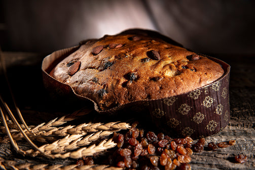 Ingredienti: Semola di GRANO duro Senator Cappelli*, uvetta*, sciroppo di glucosio da mais*, olio di girasole*, lievito naturale da pasta madre* (farina di GRANO farro, acqua), UOVA*, miele*, sale, lecitina di girasole*, malto d'ORZO*, olio essenziale d'arancio*, vaniglia da bacche in polvere*, aroma naturale di vaniglia. *ingrediente biologico